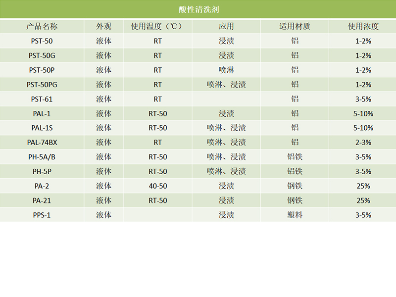 堿性清洗劑 中性清洗 酸性清洗劑 磷化皮膜劑 硅烷處理劑 鋁材鈍化劑 后處理與防銹 其它處理劑