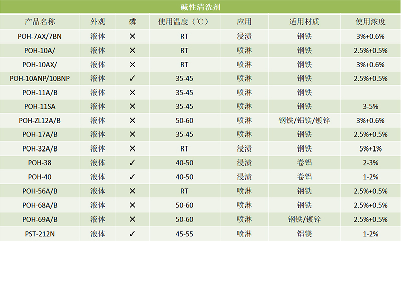 根據(jù)不同的應(yīng)用需求,可供選擇的有POH-11、POH-43、POH-28、POH-32D、POH-69等數(shù)十種不同型號的脫脂劑。